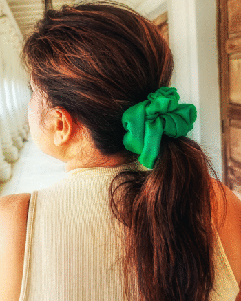 Introducing Forest Fling, a luxurious green soft silk satin scrunchie, perfect for adding a touch of nature-inspired elegance to any look.