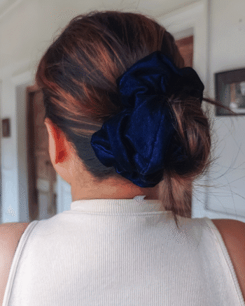 Introducing Navy Snuggle, a midnight blue velvet scrunchieβluxuriously soft and perfect for adding elegance to any look.