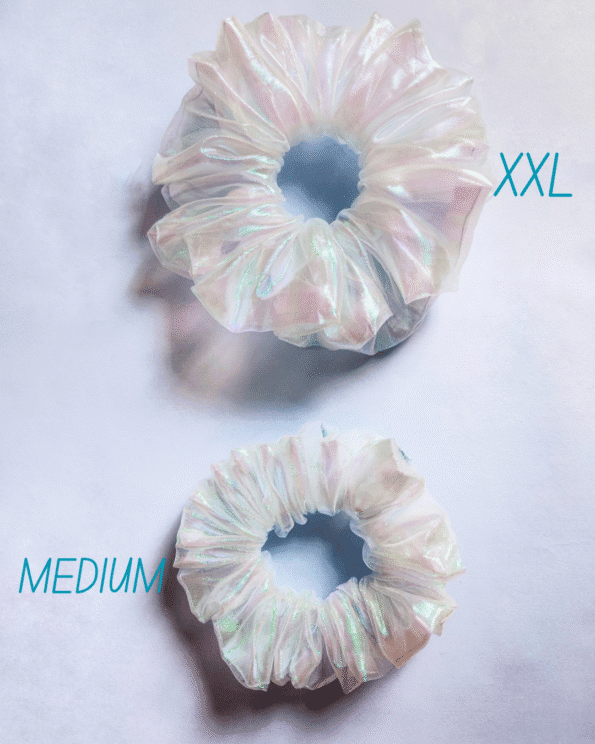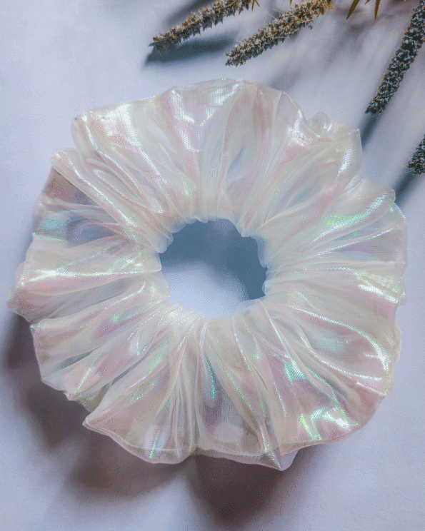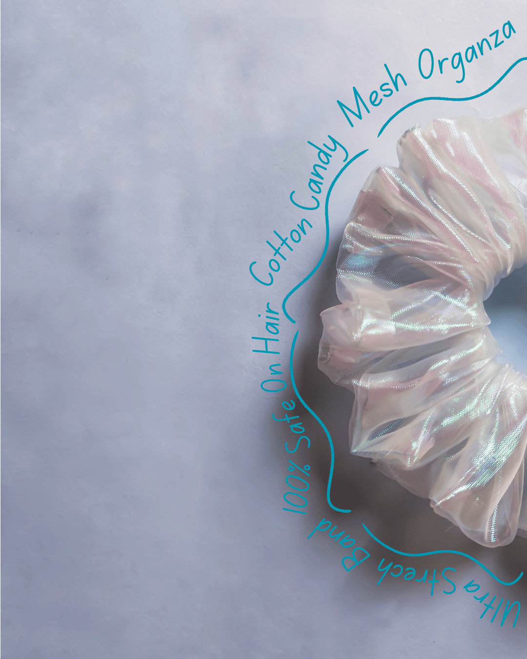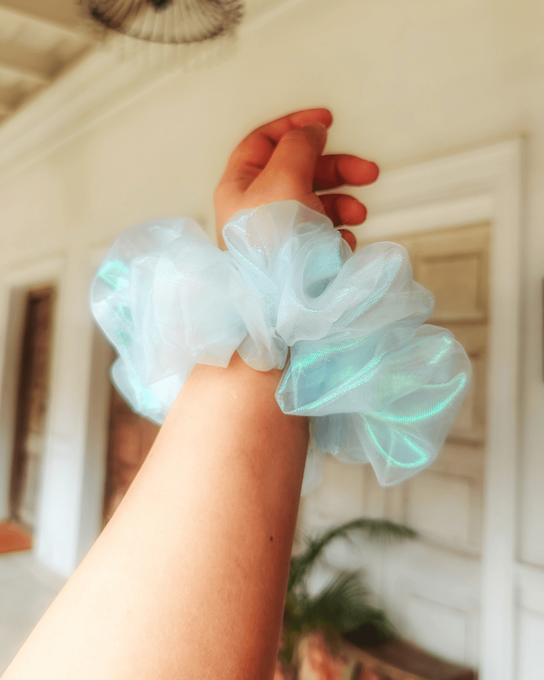Here’s Cotton Candy, a powder blue and pink dual-tone sheer organza scrunchie that adds a soft, whimsical touch to any look.