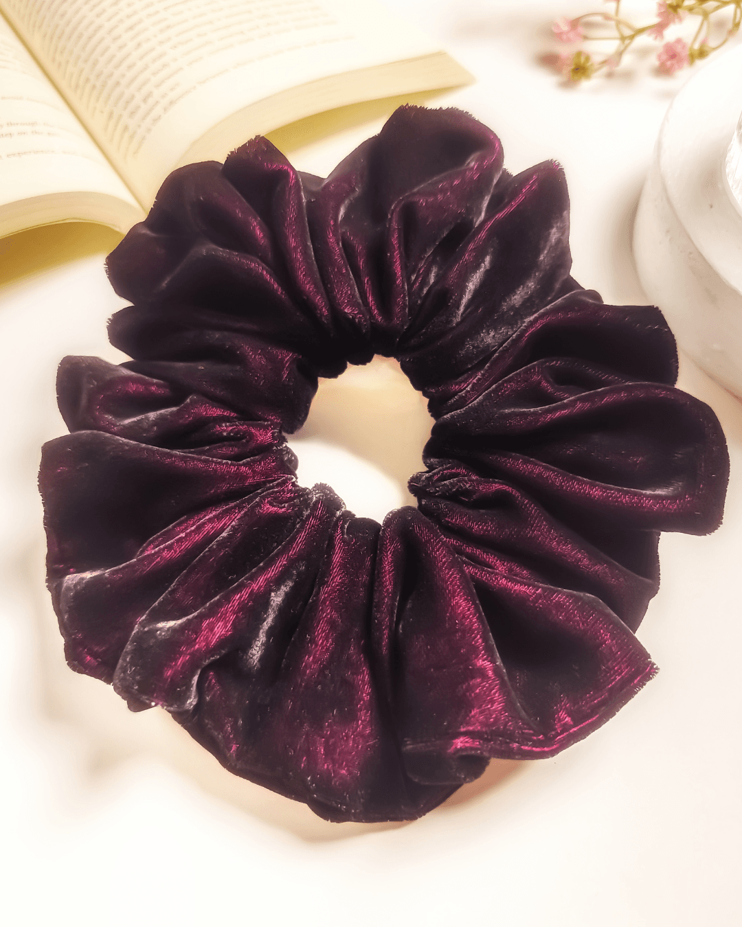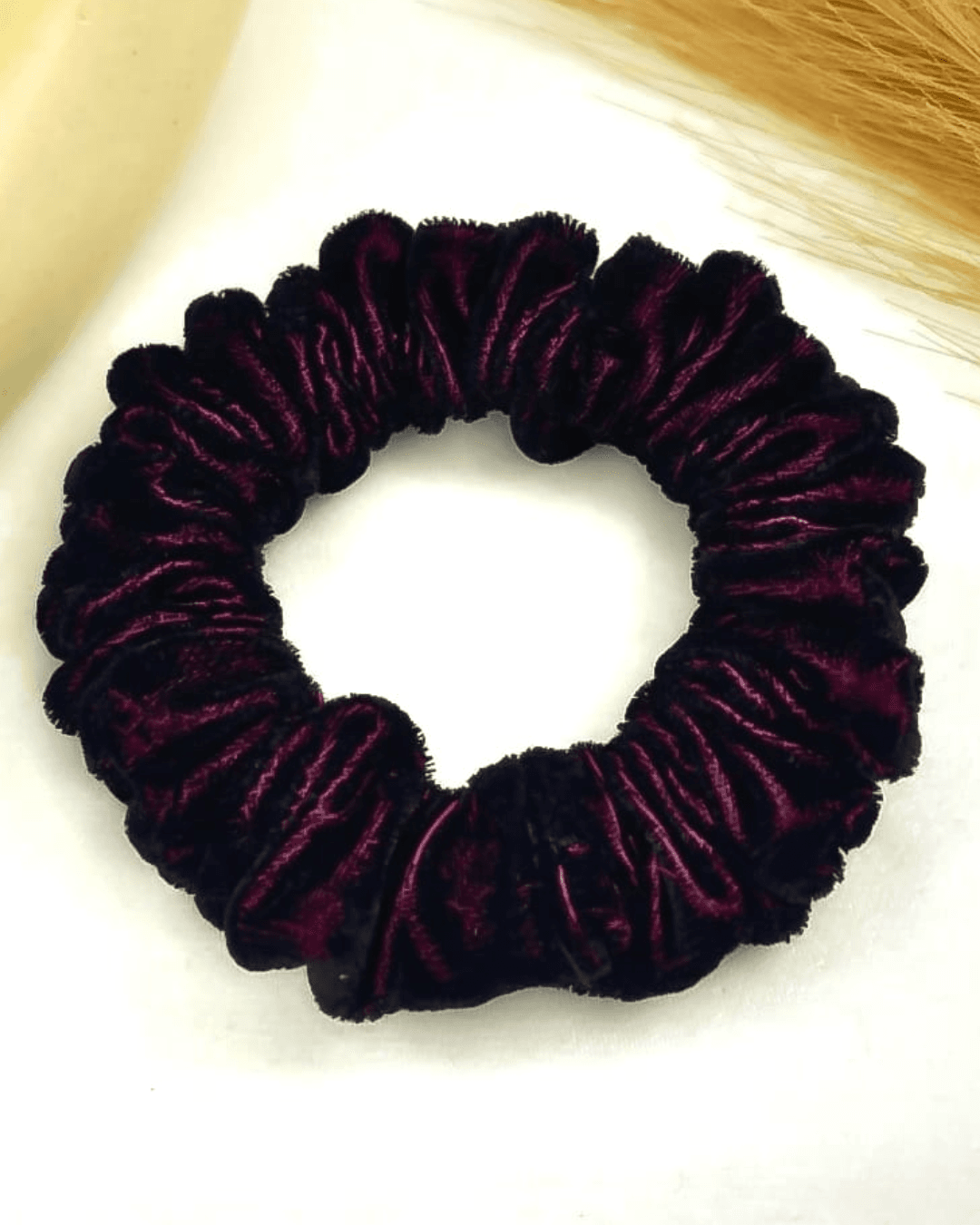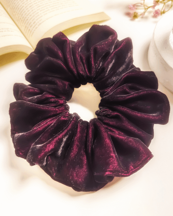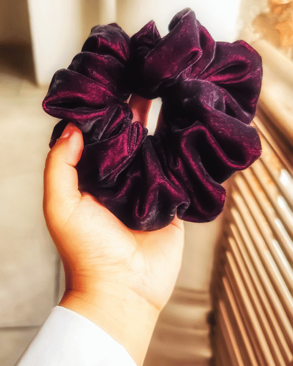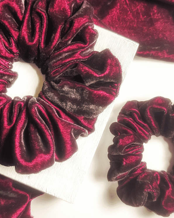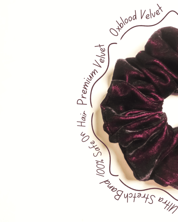 Introducing Bubbly Burgundy, a rich velvet scrunchie in deep burgundy—perfect for adding elegance to any chic ensemble!