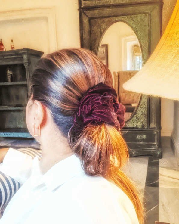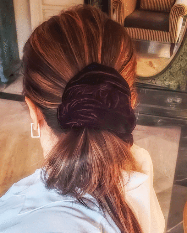 Here’s Sparkling Hazel, a hazel brown sheer organza scrunchie that adds a touch of warmth and elegance to any style.