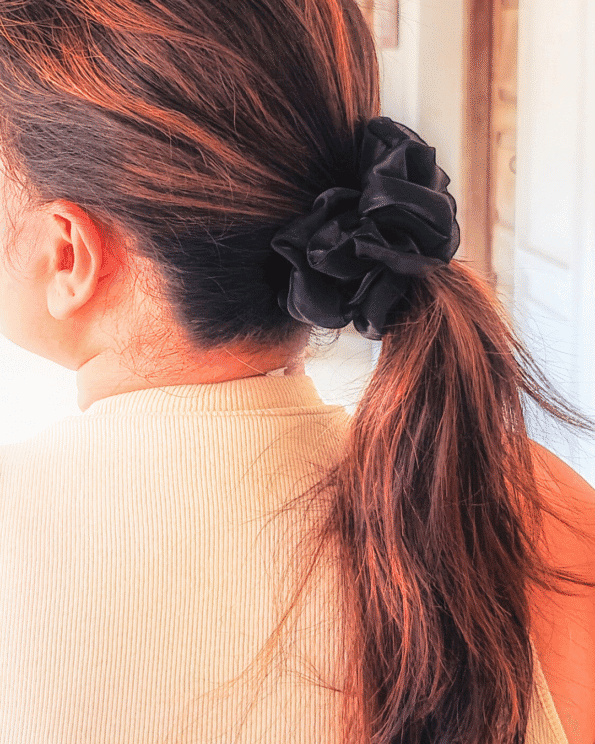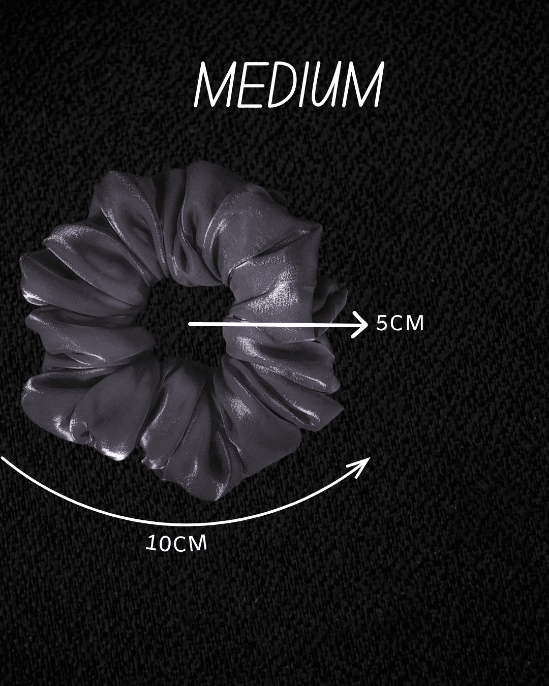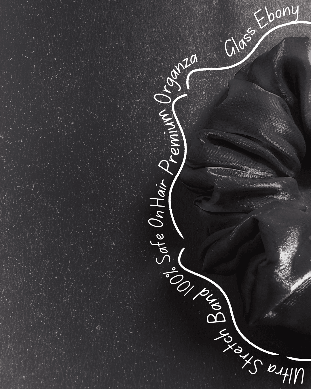 Say hello to Glass Ebony in size M—made with premium glass organza in classic black, it’s your go-to scrunchie for effortless glam from day to night!