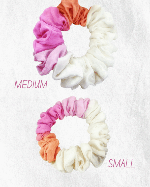 The Bubblegum Bliss scrunchie is made from premium georgette in a beautiful pink and white ombre design, capturing the playful essence of bubblegum. Its soft, flowing texture adds a light, airy touch to your hairstyle, making it perfect for everyday wear or a fun pop of color.