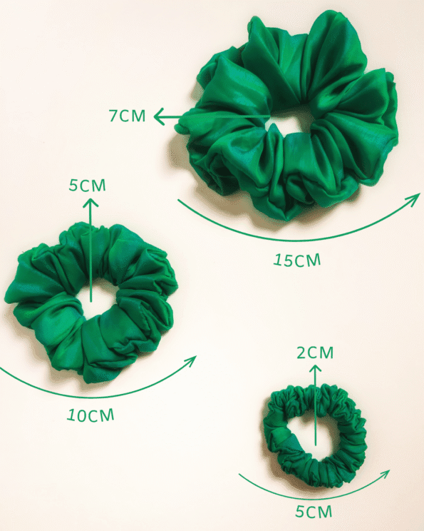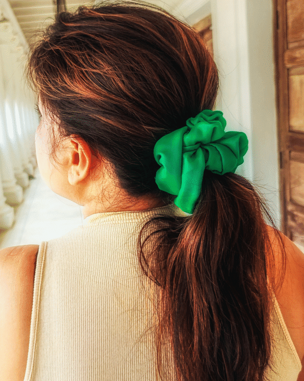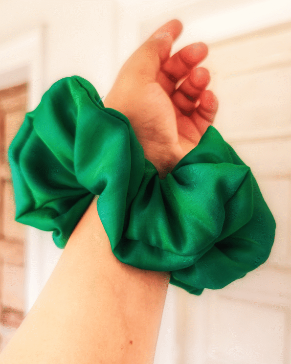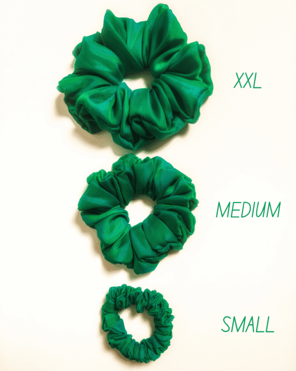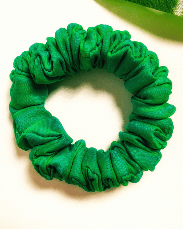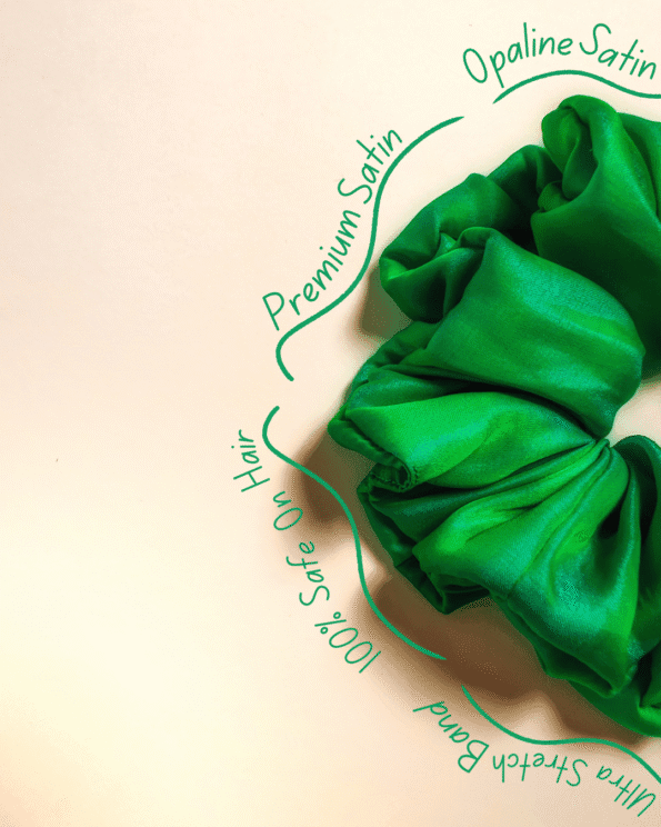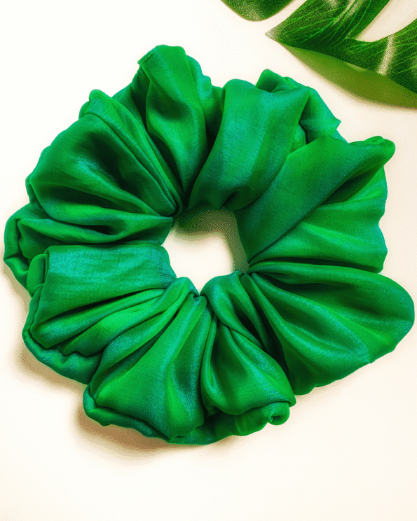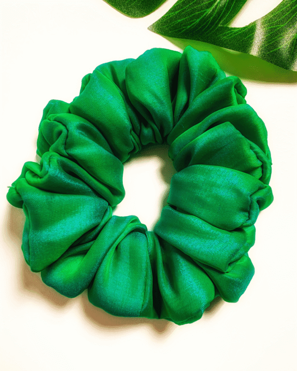 Introducing Forest Fling, a luxurious green soft silk satin scrunchie, perfect for adding a touch of nature-inspired elegance to any look.
