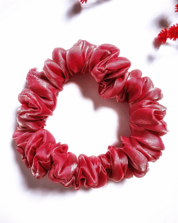 The Rosy Glow scrunchie is crafted from premium glass organza in a delicate rosy pink hue, offering a soft and romantic charm. Its translucent, lightweight texture adds an elegant and graceful touch to any hairstyle, perfect for both everyday wear and special occasions.